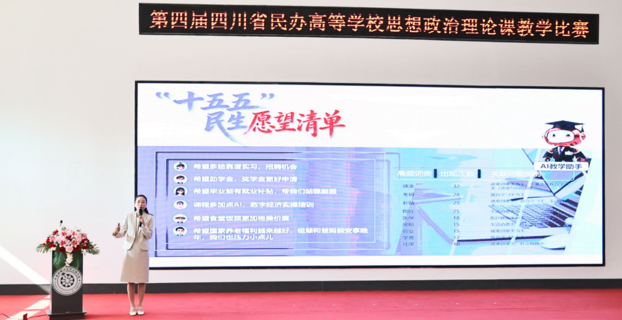 全国高校思政课教学展示活动优秀选手、四川师范大学马克思主义学院思政课教师周敏围绕“习近平新时代中国特色社会主义思想概论”课程开展示范教学。授课紧扣民生主题,从三个维度层层递进,聚焦学生现实关切,问题导向突出、逻辑严密、条理清晰,为参会教师提供了优质教学借鉴与实践参考。