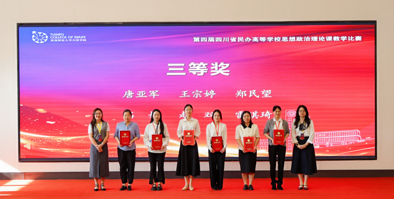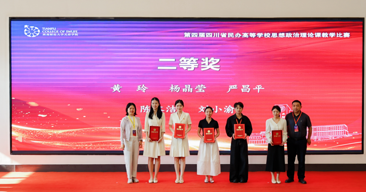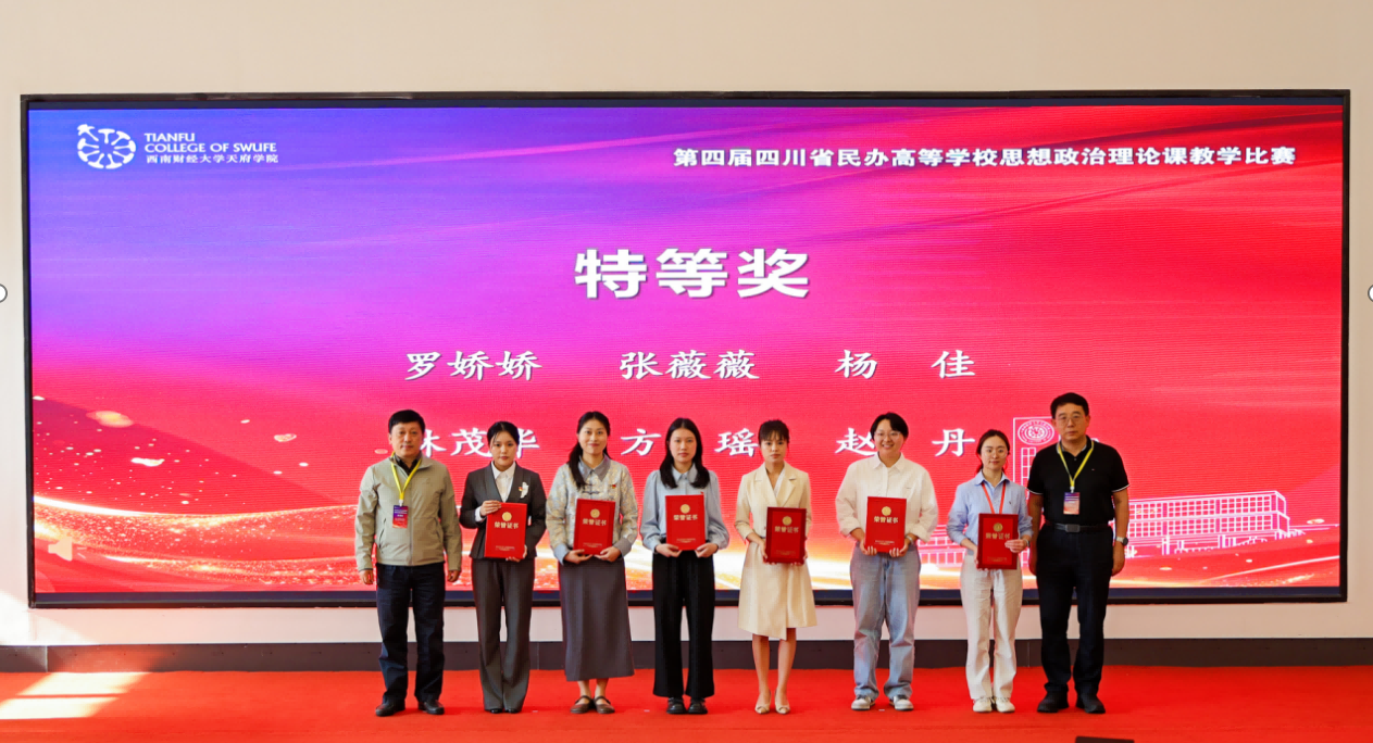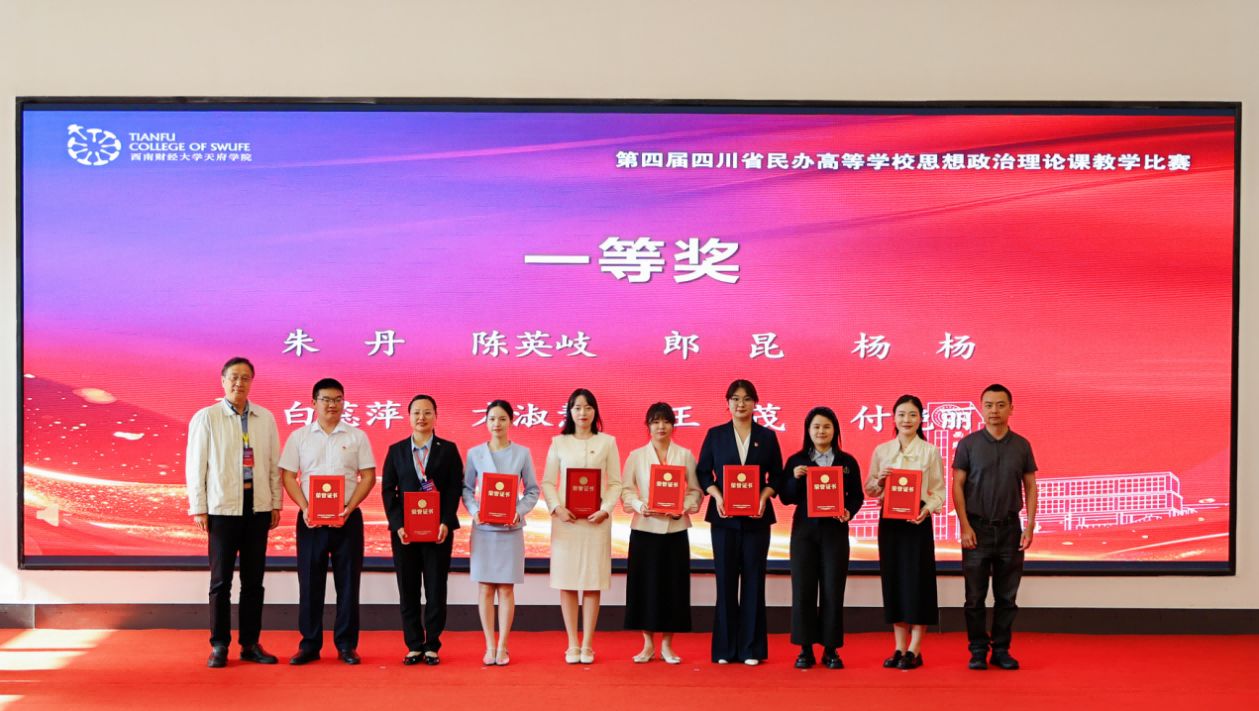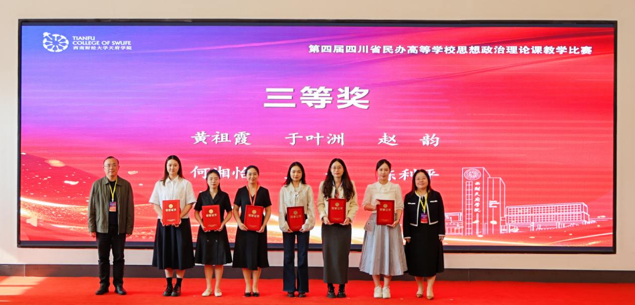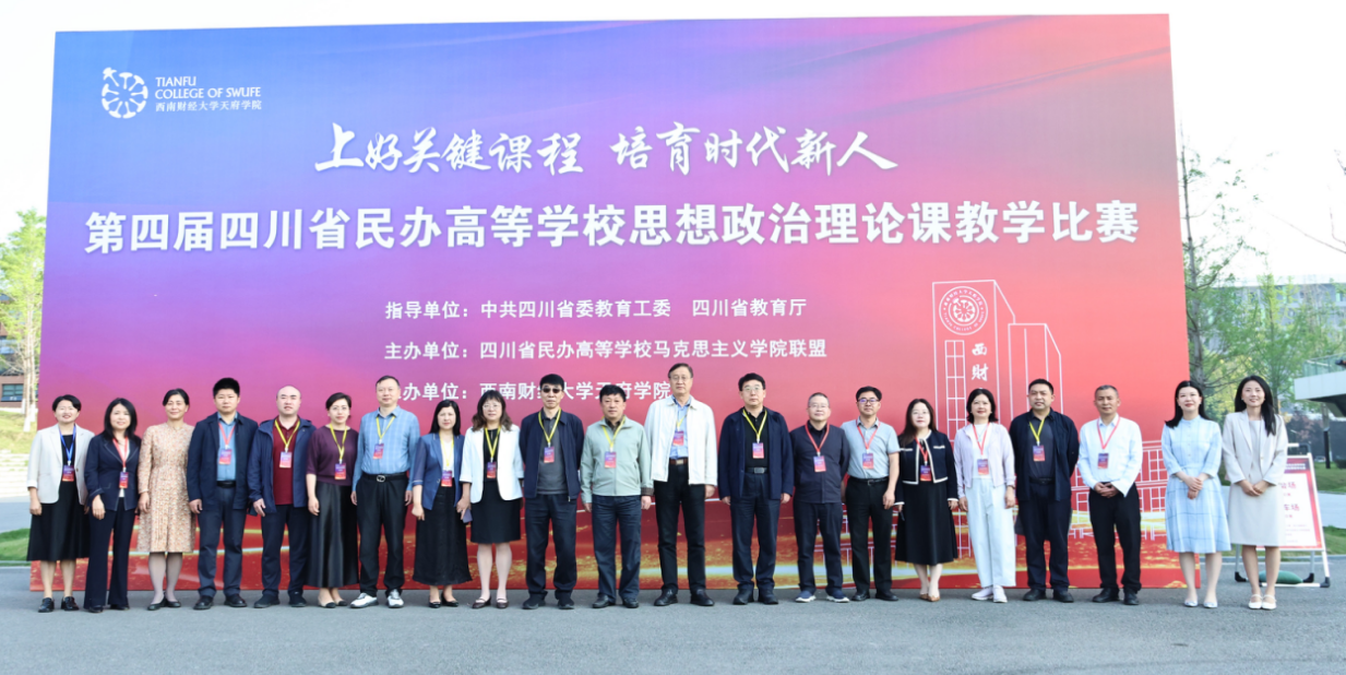 为深入学习贯彻习近平新时代中国特色社会主义思想和党的二十大、二十届历次全会精神,落实习近平总书记关于思政课建设重要指示精神及新时代学校思政课建设推进会精神,锻造好落实立德树人根本任务的关键课程,推动四川省民办高校思政课建设协同发展新格局,4月25日,第四届四川省民办高等学校思想政治理论课教学比赛在西南财经大学天府学院德阳校区成功举办。本次比赛由中共四川省委教育工委、四川省教育厅指导,四川省民办高校马克思主义学院联盟主办,西南财经大学天府学院承办,以“上好关键课程,培育时代新人”为主题。四川省委教育工委、四川省教育厅宣传思想与统战工作处处长李大鹏,教育部思政课教学指导委员会委员、四川省高校思政课教学研究会会长唐晓勇,四川省德阳市罗江区委副书记维色木果,西南财经大学天府学院党委书记、省政府督导专员韩秀英,西南财经大学天府学院副校长苟兴才、周阳等领导出席活动。四川省50余所高校的马克思主义学院负责人,四川省普通高中党委书记、校长,马克思主义理论领域资深专家,四川省民办高校和四川省中职院校一线思政课教师以及高校学生代表260余人现场学习观摩。西南财经大学天府学院副校长张之明主持。